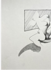 Grafito sobre papel que forma parte de una serie conceptual con figuras abstractas y composición minimalista.